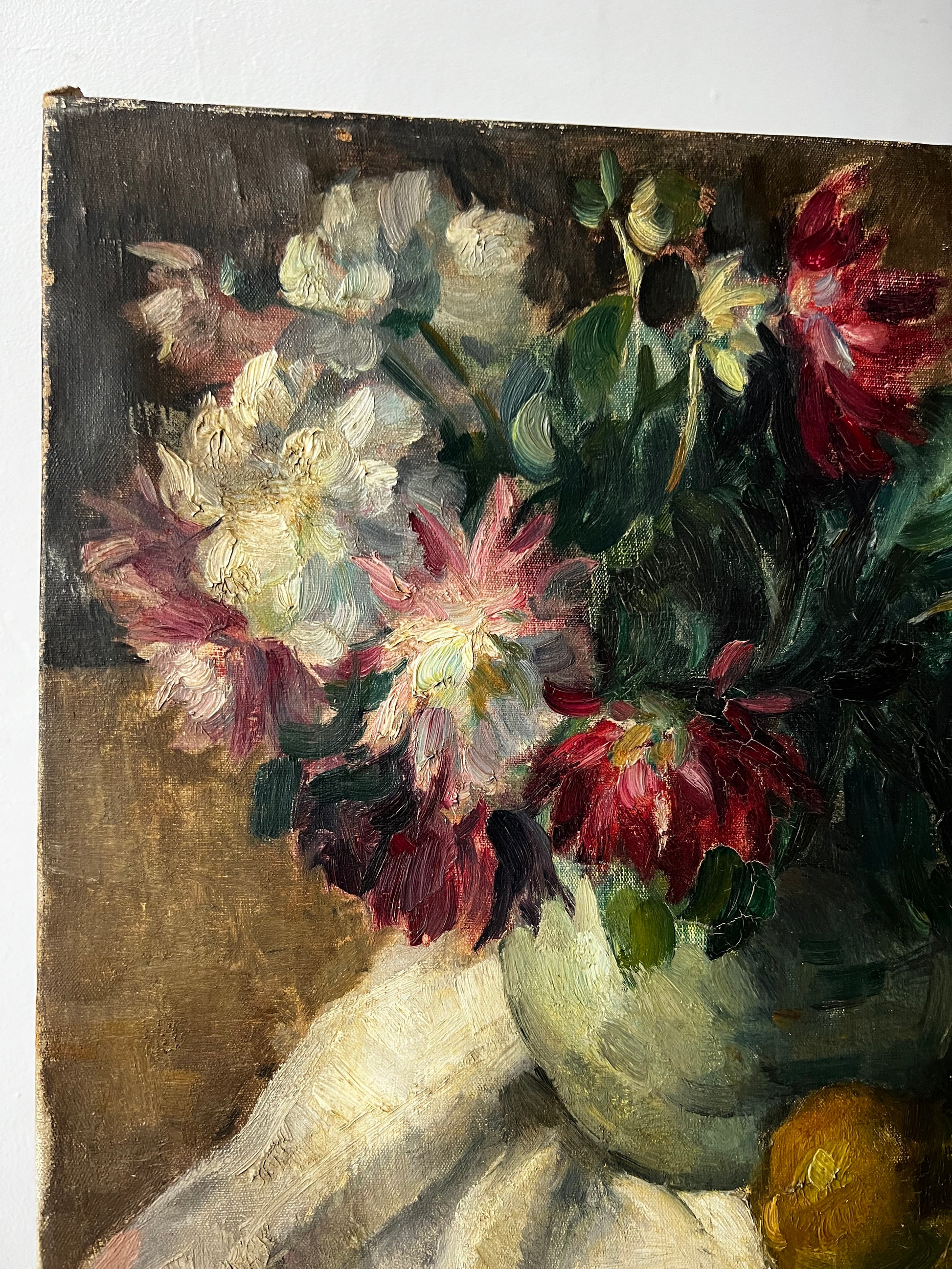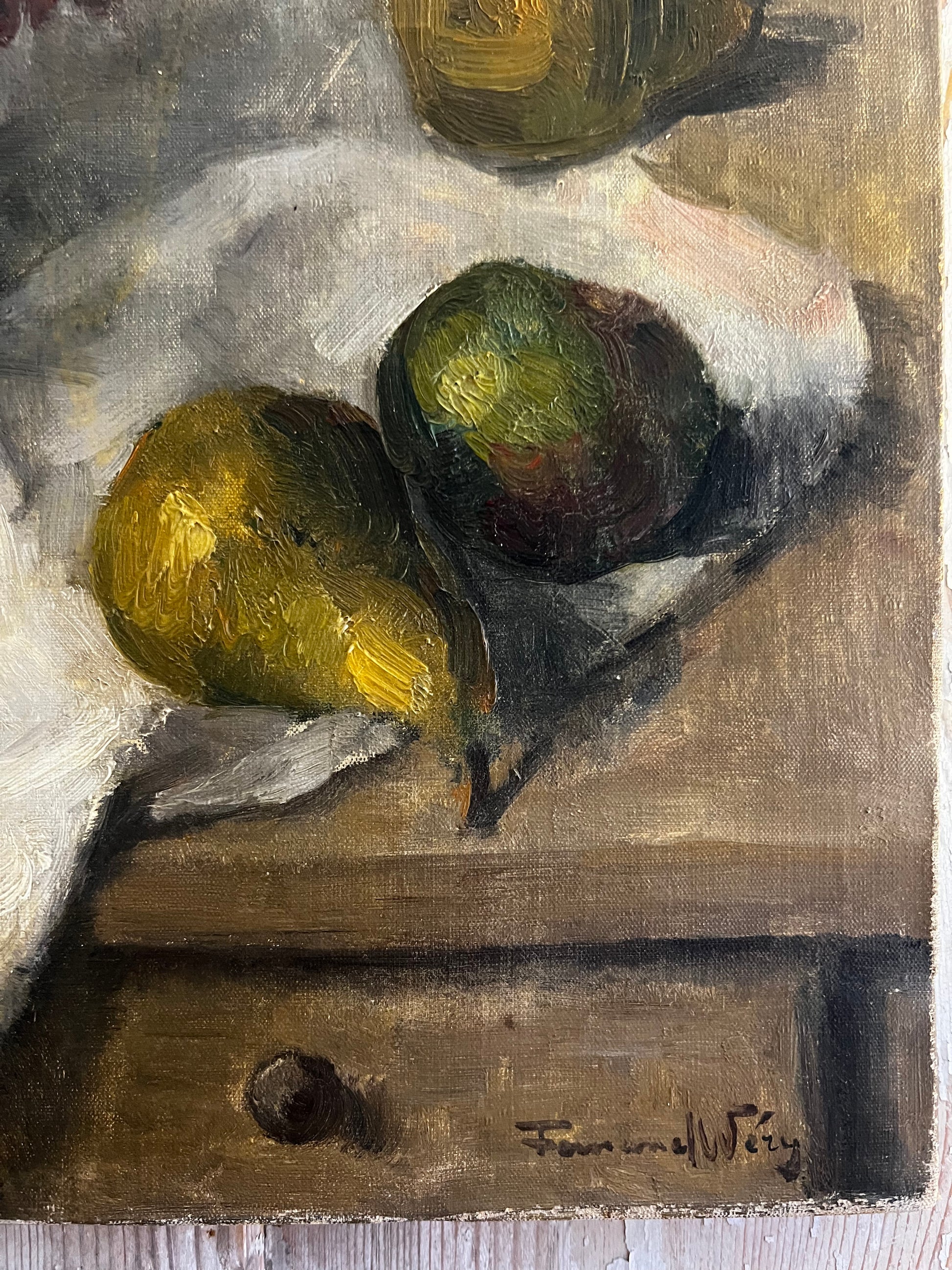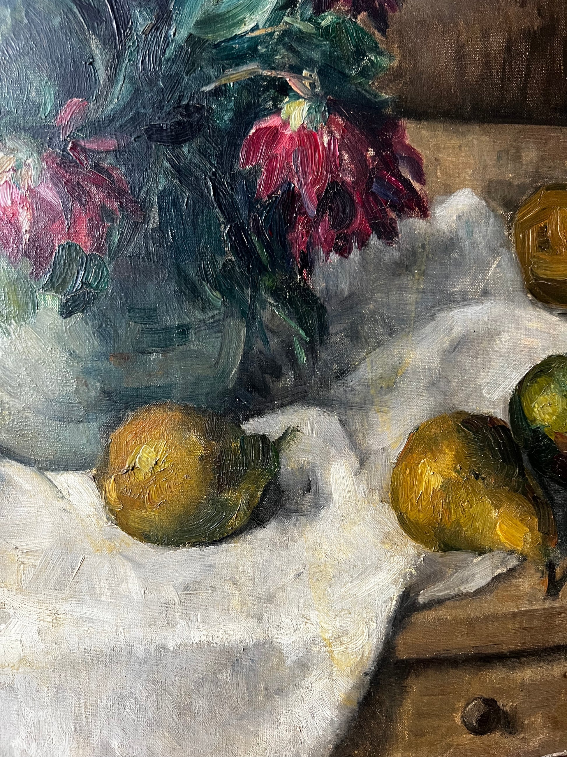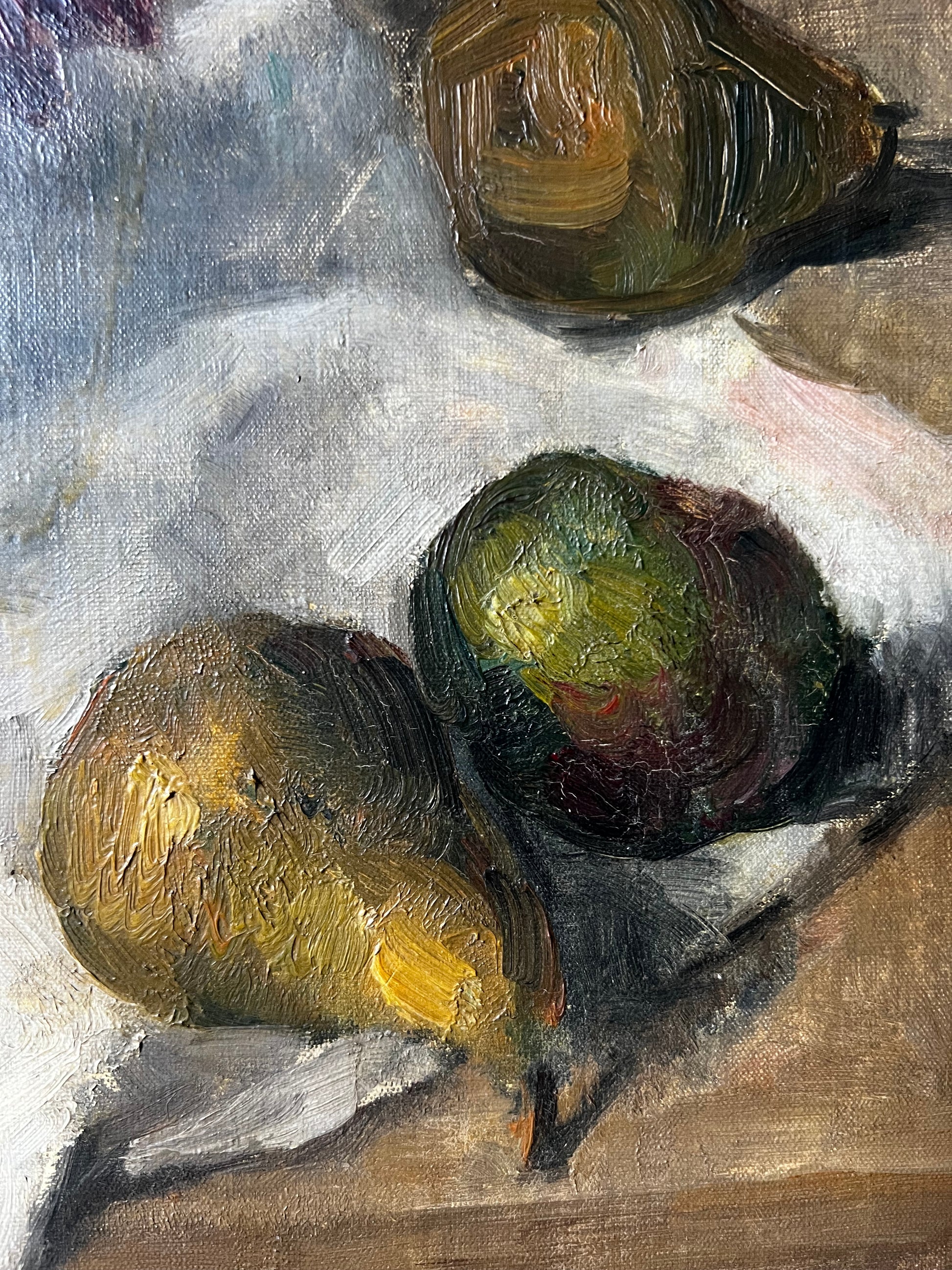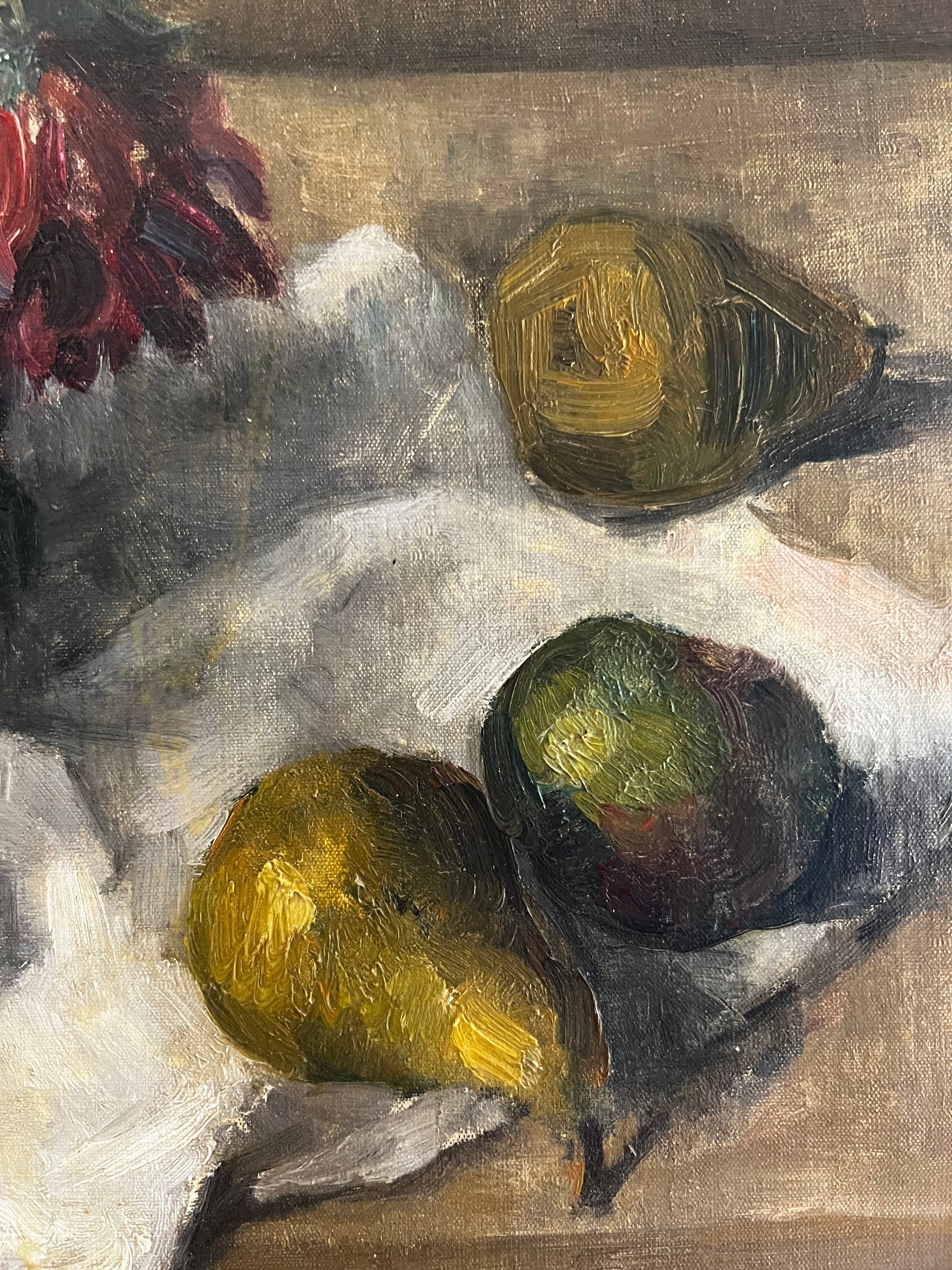 French 1930’s Still Life Oil Painting on Canvas Pears & Flowers