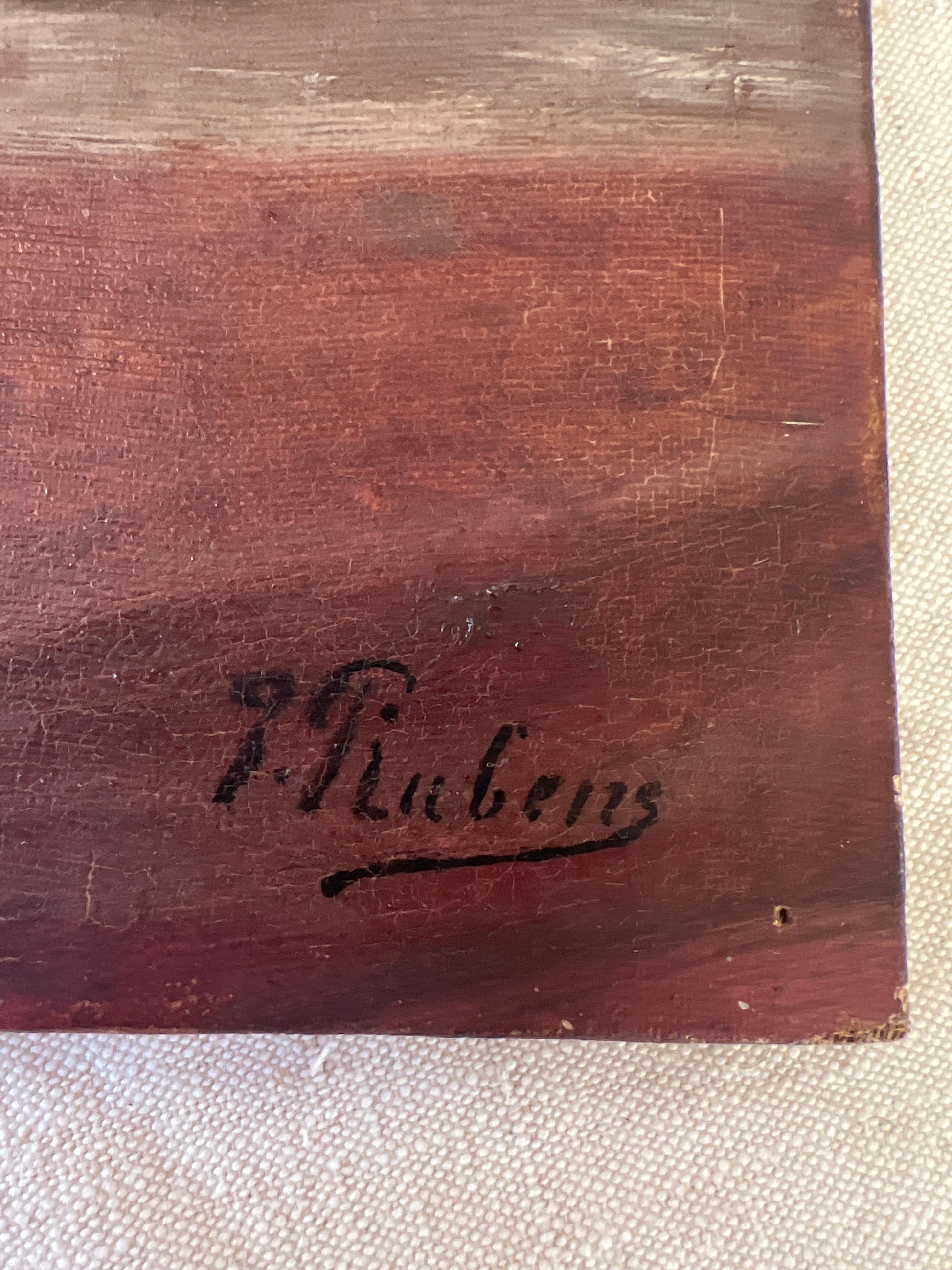 This stunning french oil painting was sourced in Lille, northern France and dates to the late 1800’s or early 20 th century and is signed by the artist lower left corner F Rubens.