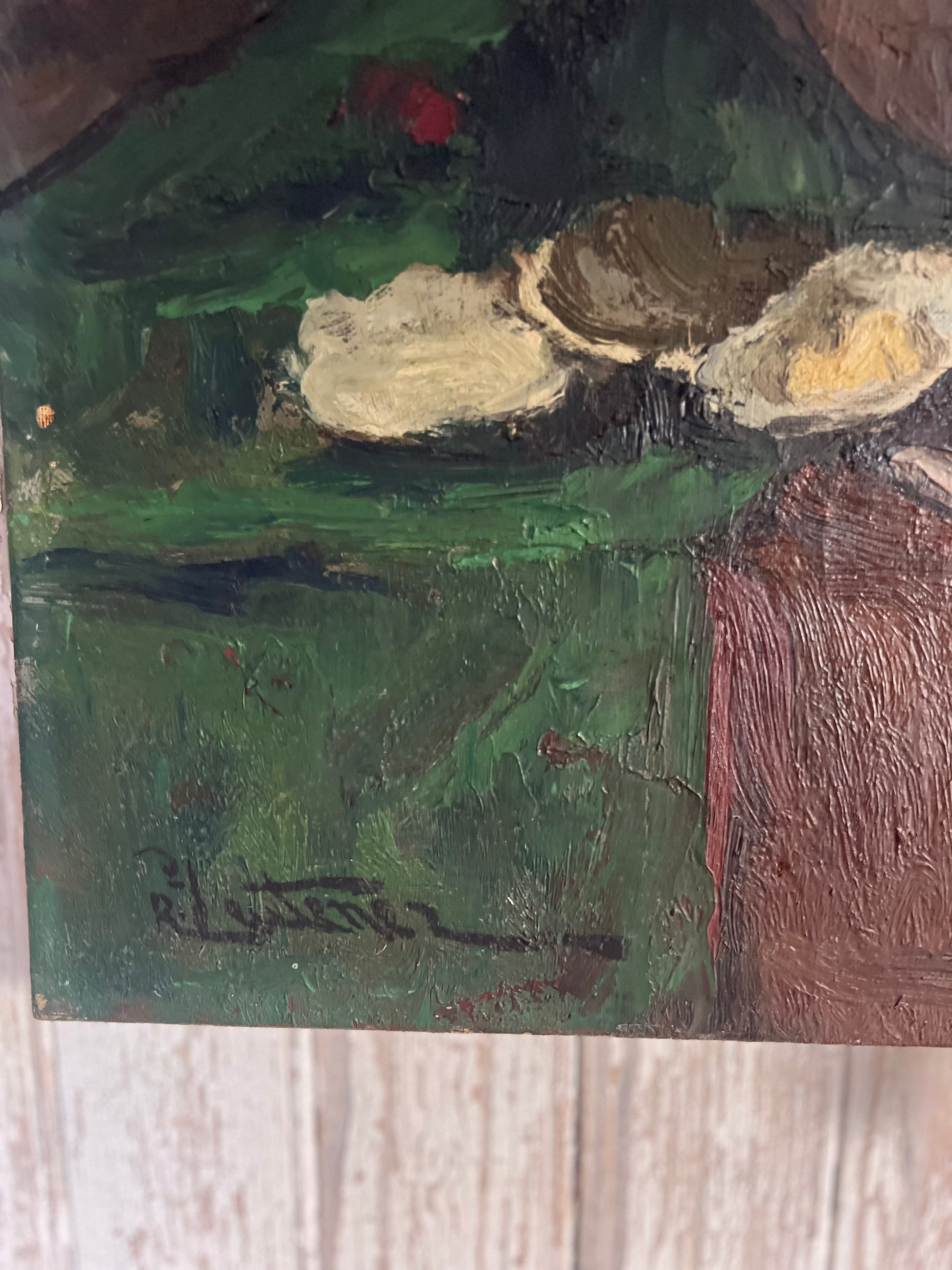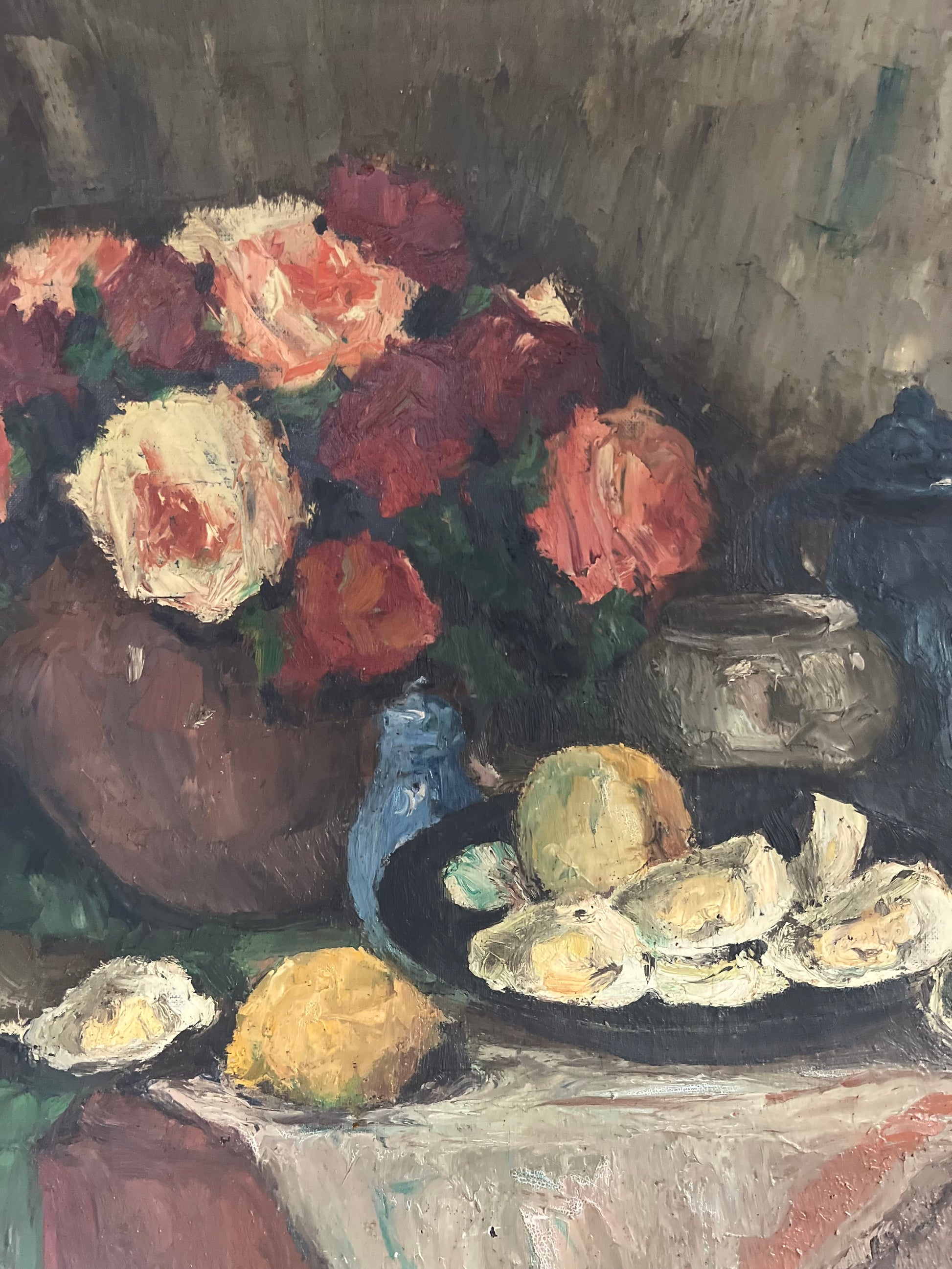 Large Post Impressionist Belgian Oil on Canvas Still Life Painting by Richard-Leon Leutenez 1881-1963 Roses & Oysters