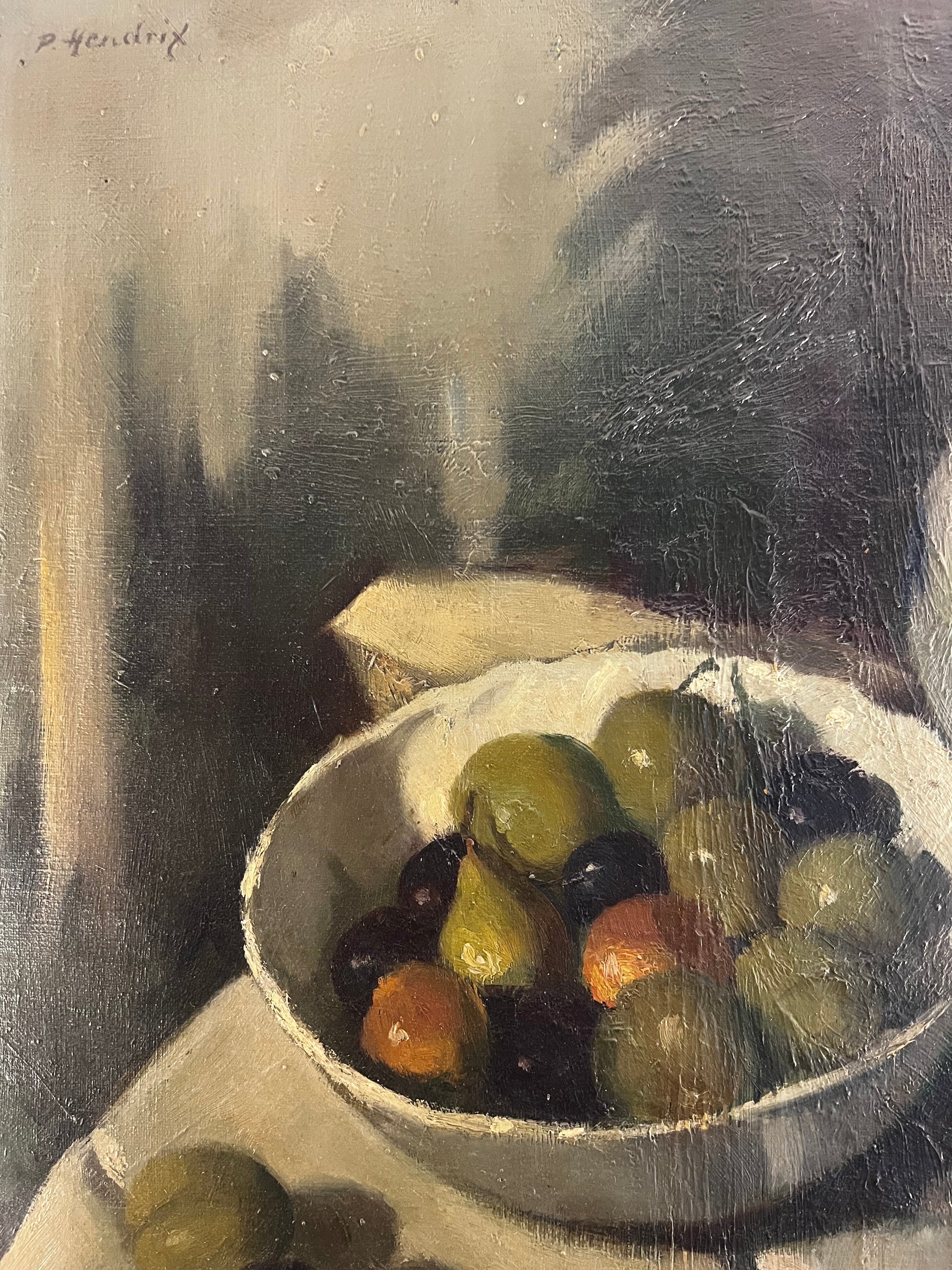 Stunning Still Life Oil Painting on Canvas by Pierre Hendrix 1913-1995 ‘Olives’