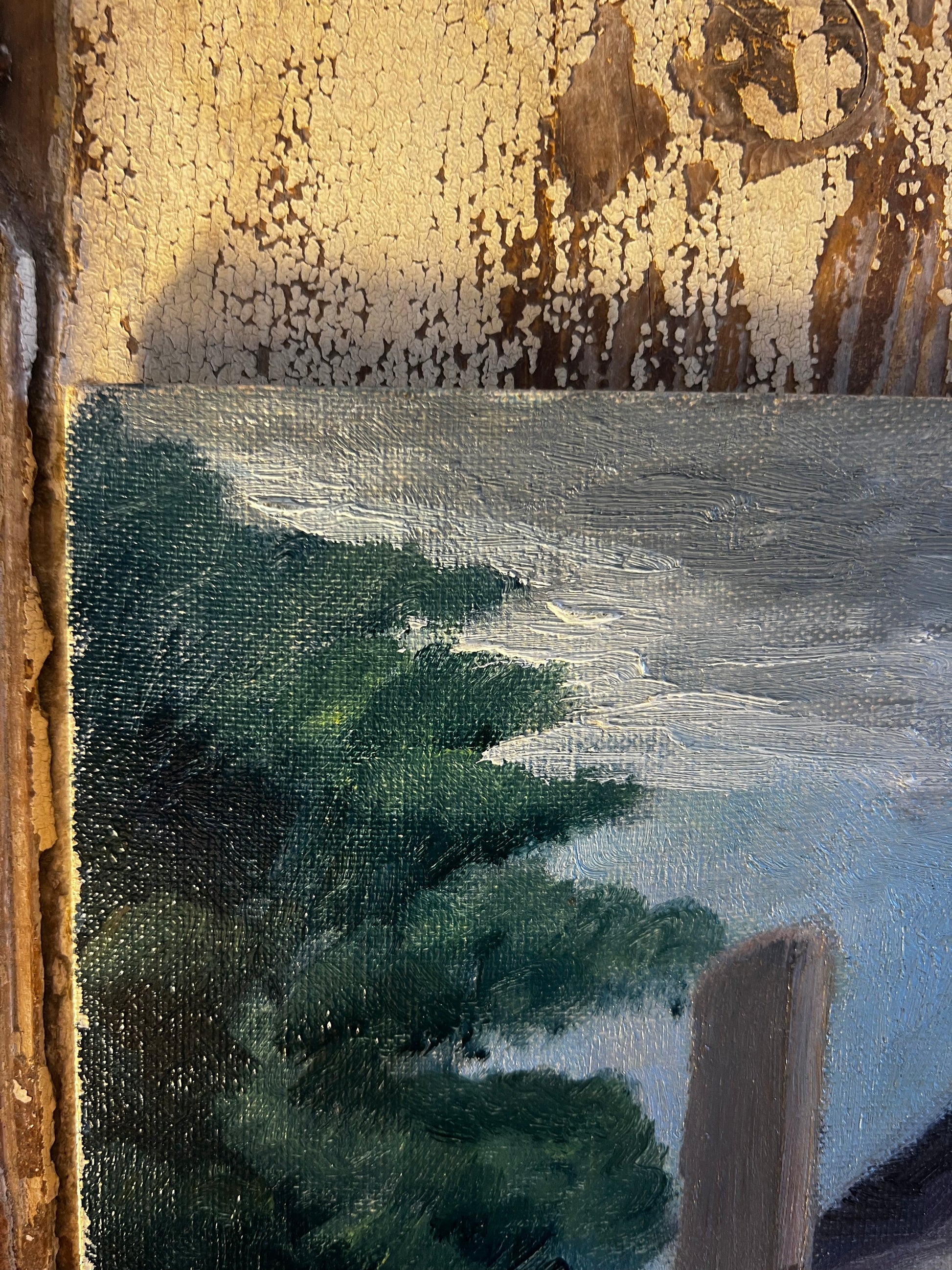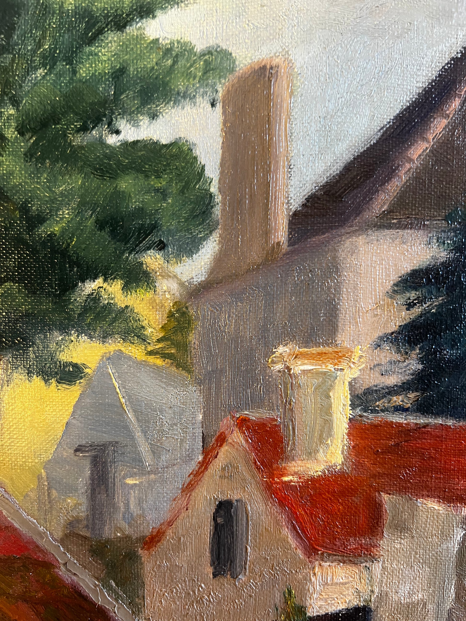 Vintage French Oil on Board Painting ‘ Roof Tops ‘